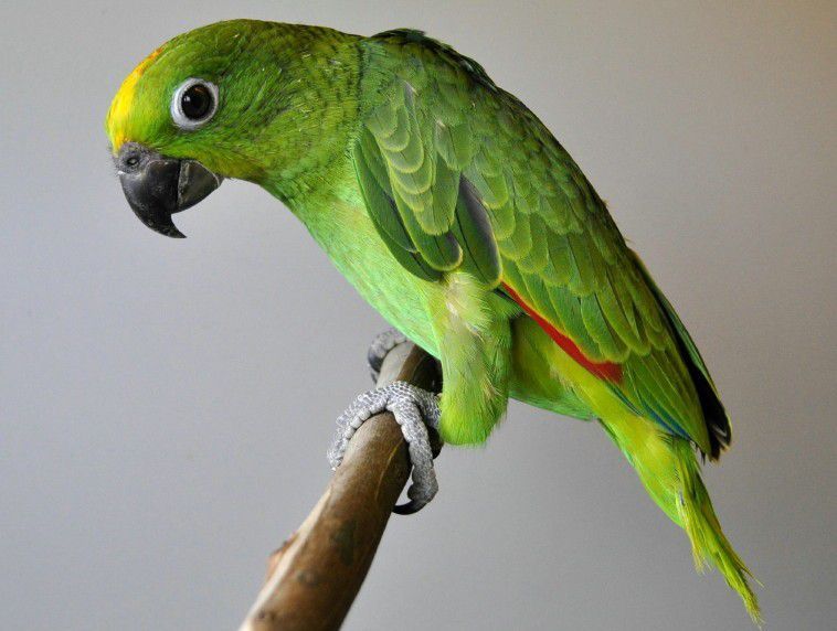 The Red-lored Amazon averages 12 – 13.6 inches (30 to 35 cm) in length (including tail) with a wingspan from 15 to 17 inches (38 to 43 cm). The average weight is 310-480g.